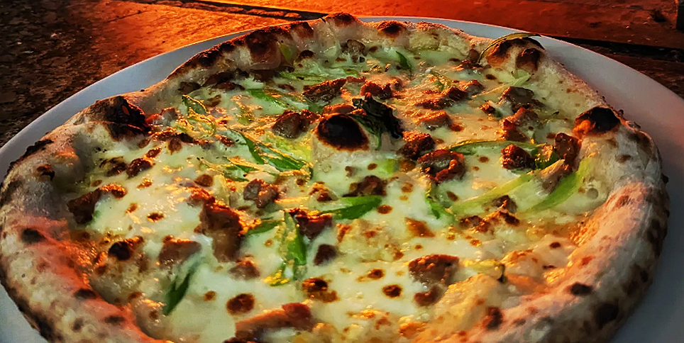 『豚もも肉と長ネギのクリームピッツァ』です。