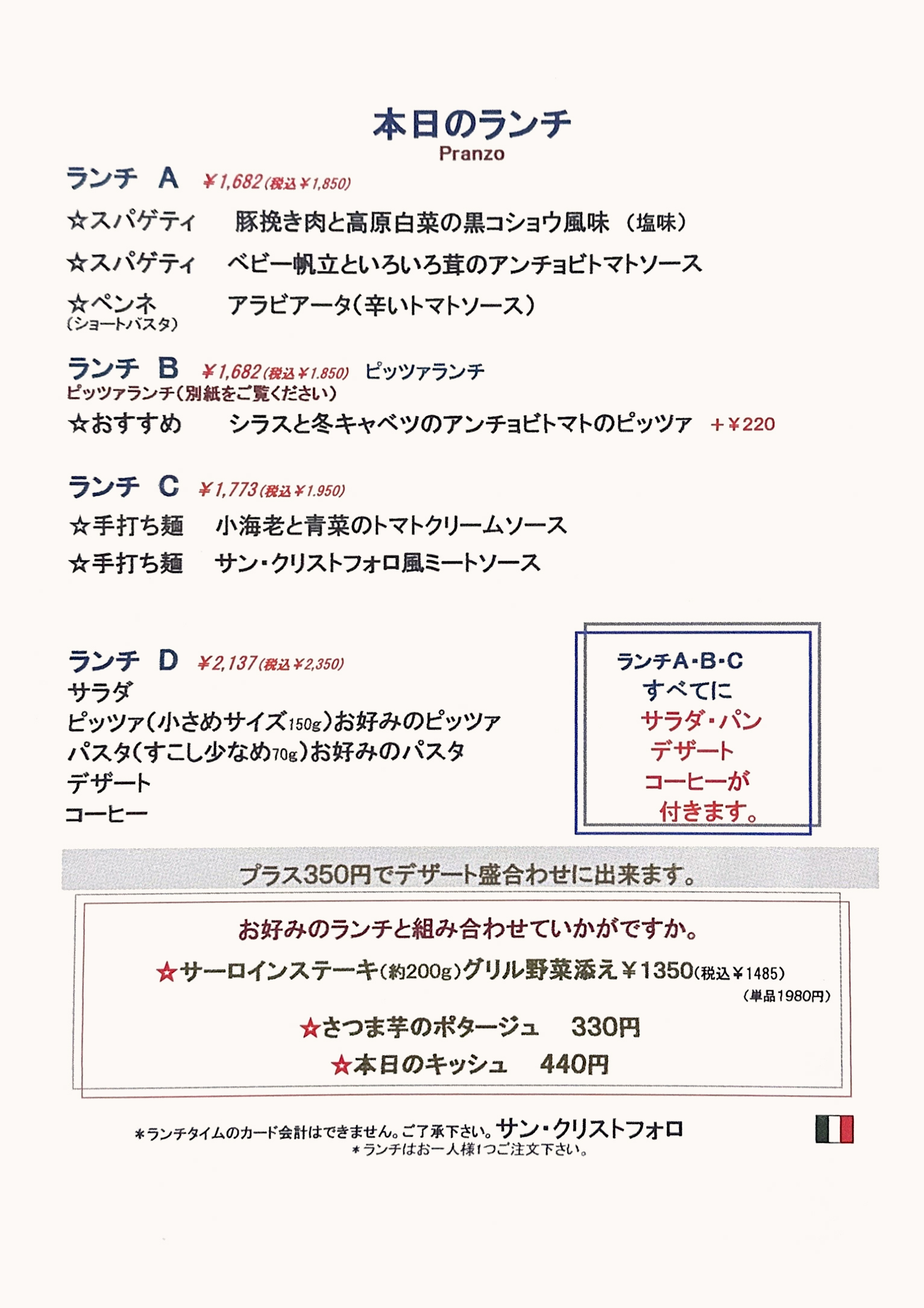 1月のディナーコースは下記にてご案内しております。是非、当店のディナーで素敵な夜をお過ごしください。